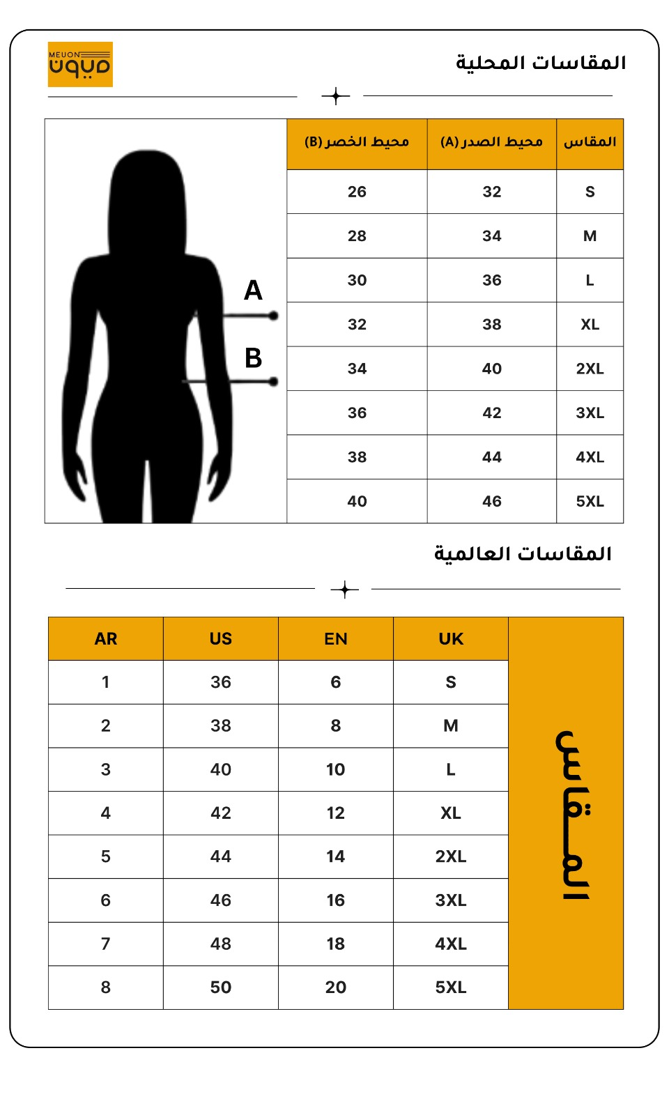 جدول المقاسات:
